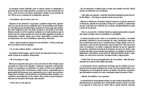 —Hija —dijo la madre sin levantar la vista del libro—. Ponte crema que