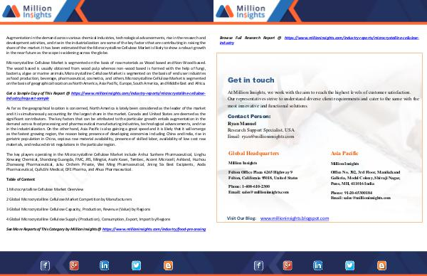 Get a Sample Copy of This Report @ https://www.millioninsights.com/industry-reports/microcrystalline-cellulose-