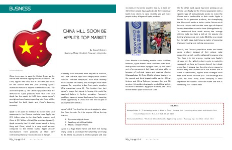 The Associated Press. " Tim Cook: China to Become Apple ' s Top Market." Newsday. N. p., n. d. Web. 14 Jan. 2013.