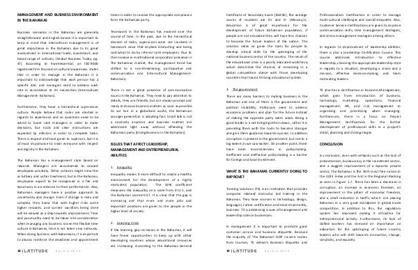 MANAGEMENT AND BUSINESS ENVIRONMENT IN THE BAHAMAS