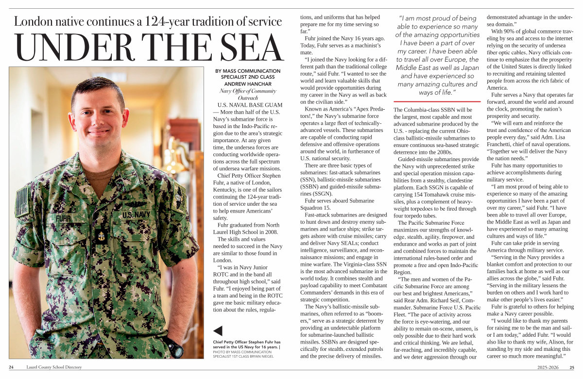 “ Serving in the Navy provides a blanket comfort and protection to our families back at home as well as our allies across the globe,” said Fuhr.“ Serving in the military lessens the burden on others and I work hard to make other people’ s lives easier.”