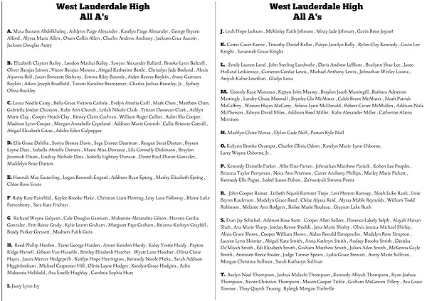 A. Masa Bassam Abdelkhaleq , Ashlynn Paige Alexander , Katelyn Paige Alexander , George Brycen Alford , Alyssa Marie Allen , Owen Collin Allen , Charles Andrew Anthony , Jackson Cruz Aucoin , Jackson Douglas Autry