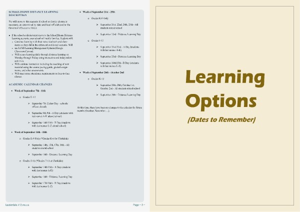 • If the school or district must move to the School2Home Distance Learning scenario , your school will notify families . Students will : » Continue learning with their same teacher / s and classmates as they did in the enhanced traditional scenario . Will » use LCSD Learning Management Systems ( Google