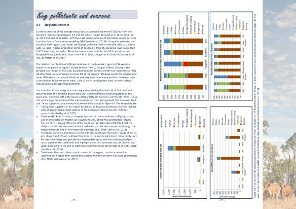 Current estimates of the average annual total suspended sediment ( TSS ) load from the Burdekin region range between 3.2 and 4.0 million tonnes ( Dougall et al . 2014 ; Kroon et al . 2012 ; Kuhnert et al . 2012 ), with the most recent estimate of 3.8 million tonnes per year from the Source Catchments modelling ( McCloskey et al . 2017b ). Using this estimate , the Burdekin NRM region contributes the highest sediment loads to the GBR ( 39 % of the total GBR TSS load ). A large proportion ( 87 %) of this load is from the Burdekin River basin itself ( 3,222 kilotonnes annually ). These loads are estimated to be 5 to 10 times above pre- European loads ( Lewis et al . 2014 ; Kroon et al . 2012 ; Dougall et al . 2014 ; McCloskey et al . 2017b ; Waters et al . 2014 ).