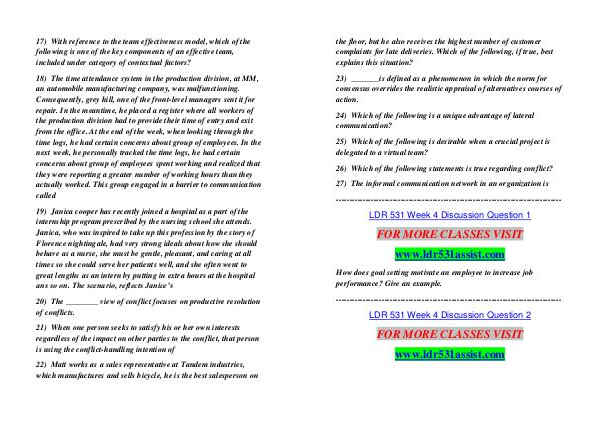 17) With reference to the team effectiveness model, which of the following is one of the key components of an effective team, included under category of contextual factors?