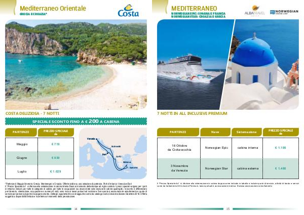 *Partenze di Maggio itinerario: Grecia, Montenegro e Croazia. Offerte valide su una selezione di partenze. Porti d’imbarco: Venezia e Bari