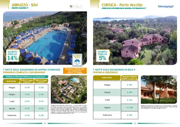 Soggiorni da Domenica a Domenica. Il “Prezzo Finito” in tabella