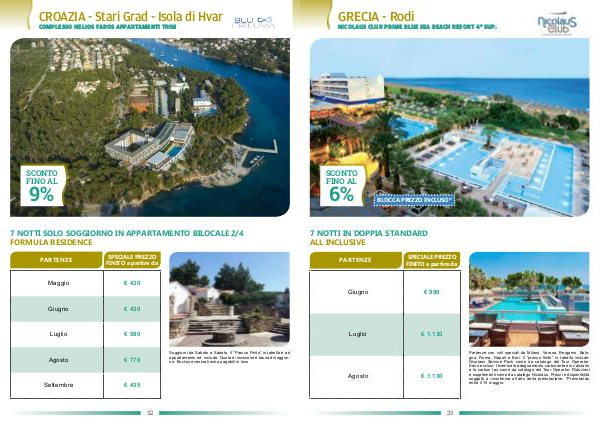 Soggiorni da Sabato a Sabato. Il “Prezzo Finito” in tabella è ad