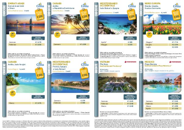 giorno da pagare a bordo. Dettagli, supplementi e costi aggiuntivi come da catalogo Costa Crociere edizione Novembre 2018. Offerta soggetta a disponibilità limitata e riconferma al momento della