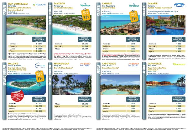 Offerte valide su una selezione di partenze. Partenze con voli speciali da Milano