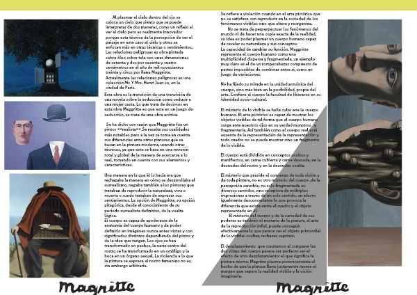 La capacidad de cambiar su función. Maggritte representa el cuerpo humano como una multiplicidad dispersa y fragmentada, un ejemplo muy claro es el de un rompecabezas compuesto de partes imposibles de combinar entre sí, como un juego de variaciones.