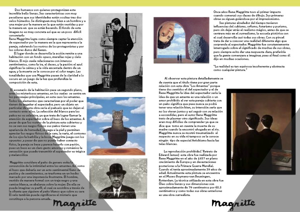 La reproducción prohibida (´Retrato de Edward James) esta obra fue realizada por Rene Maggritte en el año de 1937 en pleno crecimiento de Europa y en devastaciones posteriores a la Primera Guerra Mundial. Cuando el tenia aproximadamente 39 años de edad. Actualmente esta pintura se encuentra en el Museo Boymans-van Beuningen, Rotterdam. La técnica utilizada en esta obra fue Óleo sobre lienzo y sus dimensiones son aproximadamente de 79 centímetros por 65.5 centímetros y como todas sus obras anteriores es una obra surrealista.