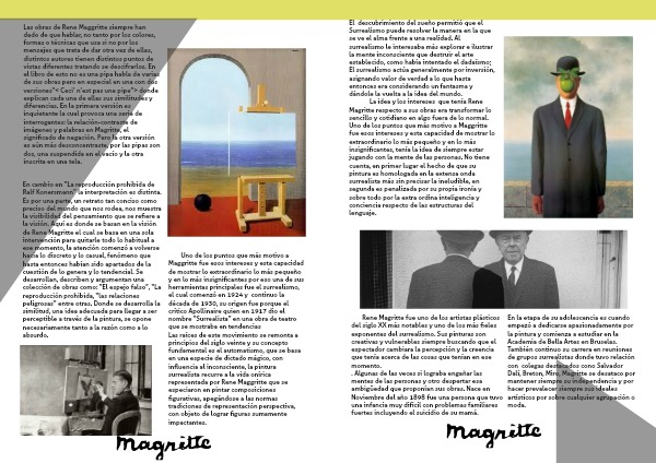 Rene Magritte fue uno de los artistas plásticos del siglo XX más notables y uno de los más fieles exponentes del surrealismo. Sus pinturas son creativas y vulnerables siempre buscando que el espectador cambiara la percepción y la creencia que tenía acerca de las cosas que tenían en ese momento.
