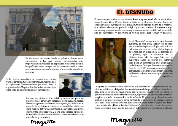 Se abarcaron los temas desde su primera pintura en el surrealismo y las que fueron consideradas más importantes en su época de esplendor. No se menciona la biografía del autor porque nos basamos más en los datos más importantes como la iconografía de cada uno de las pinturas