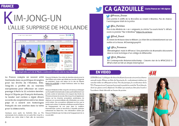 La France compte un nouvel allié inattendu dans sa politique étrangère pour les Droits de l’Homme. Kim-Jong-Un a profité de sa tournée européenne pour effectuer un court passage à Paris le 21 octobre dernier. Reçu à l’Elysée par François Hollande, le leader sud coréen a signé divers accords de coopération entre les deux pays et a assuré son homologue français de son soutien dans la lutte pour la démocratie.