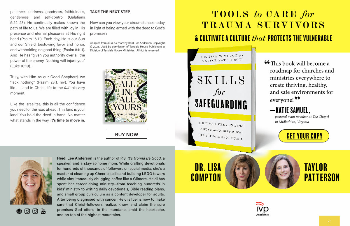 Adapted from All In, All Yours by Heidi Lee Anderson. Copyright © 2025. Used by permission of Tyndale House Publishers, a Division of Tyndale House Ministries. All rights reserved.