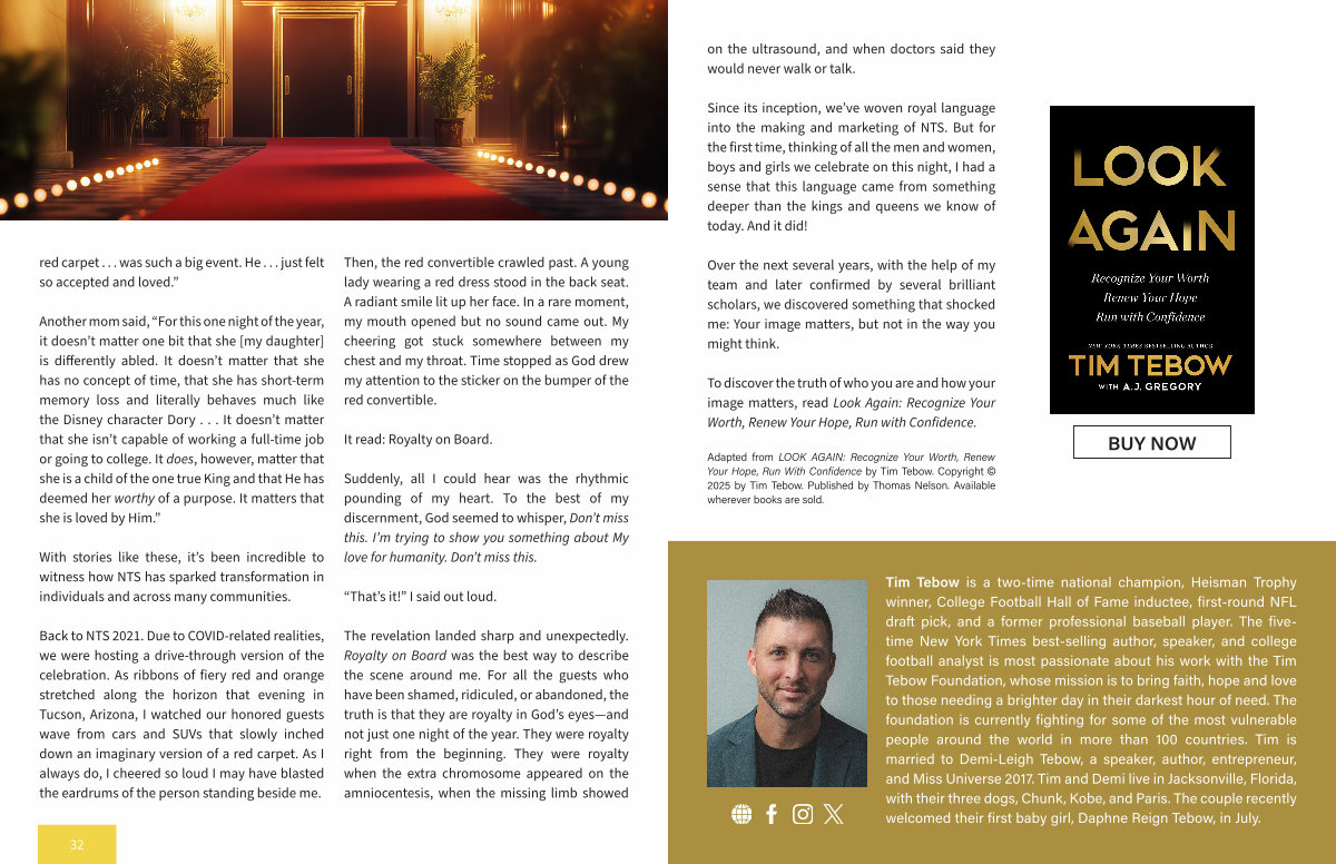 The revelation landed sharp and unexpectedly. Royalty on Board was the best way to describe the scene around me. For all the guests who have been shamed, ridiculed, or abandoned, the truth is that they are royalty in God’ s eyes— and not just one night of the year. They were royalty right from the beginning. They were royalty when the extra chromosome appeared on the amniocentesis, when the missing limb showed