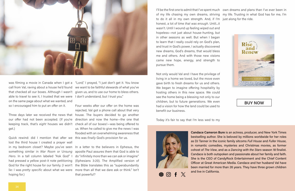 I’ ll be the first one to admit that I’ ve spent much of my life chasing my own dreams, striving to do it all in my own strength. And, if I’ m honest, a lot of time that was enough. Until... it wasn’ t. Until I wound up feeling wiped out and hopeless— not just about house-hunting, but in other seasons as well. But when I began to learn that I really could rely on God’ s plan, and trust in God’ s power, I actually discovered new dreams, God’ s dreams, that would bless me and others. And with those new visions came new hope, energy, and strength to pursue them. own dreams and plans than I’ ve ever been in my life. Trusting in what God has for me, I’ m just along for the ride.
