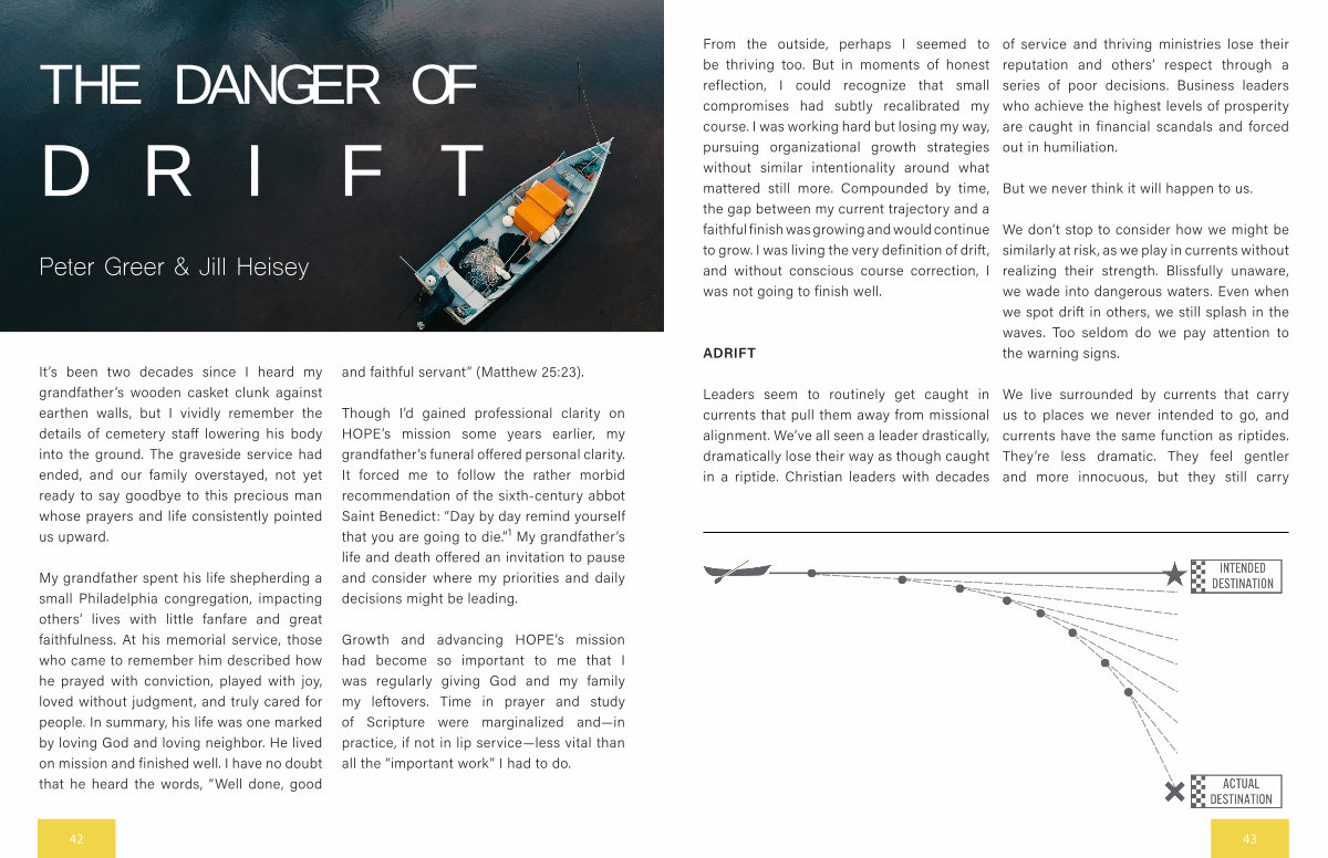From the outside, perhaps I seemed to be thriving too. But in moments of honest reflection, I could recognize that small compromises had subtly recalibrated my course. I was working hard but losing my way, pursuing organizational growth strategies without similar intentionality around what mattered still more. Compounded by time, the gap between my current trajectory and a faithful finish was growing and would continue to grow. I was living the very definition of drift, and without conscious course correction, I was not going to finish well.