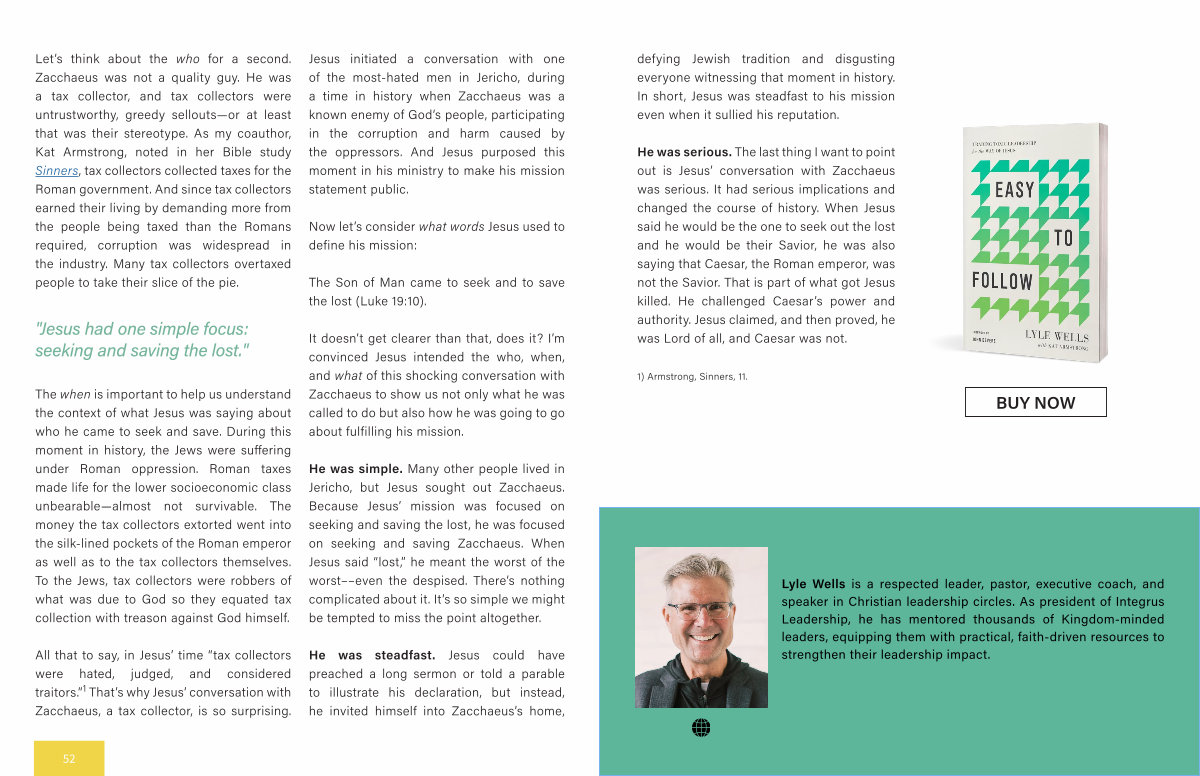 It doesn’ t get clearer than that, does it? I’ m convinced Jesus intended the who, when, and what of this shocking conversation with Zacchaeus to show us not only what he was called to do but also how he was going to go about fulfilling his mission.