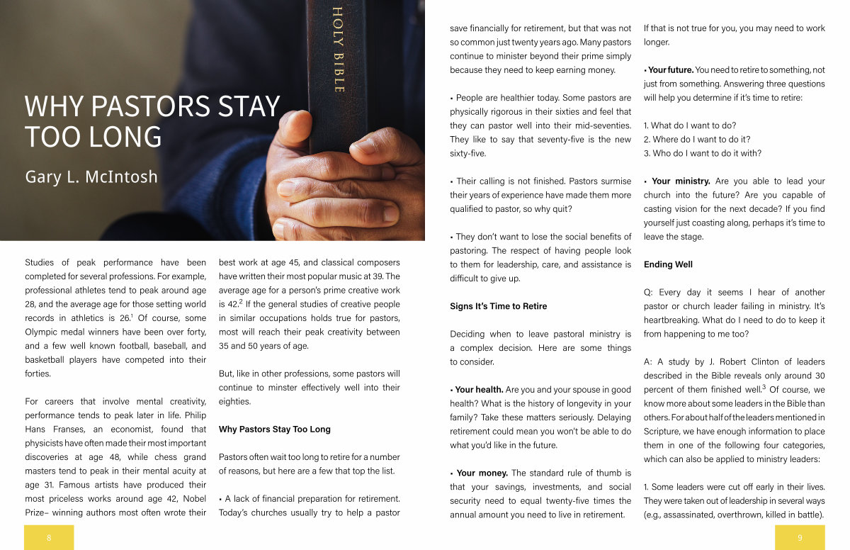 • Their calling is not finished. Pastors surmise their years of experience have made them more qualified to pastor, so why quit?
