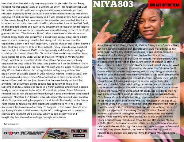 to the music of these artist. Niya's Music career began at the age of 12,