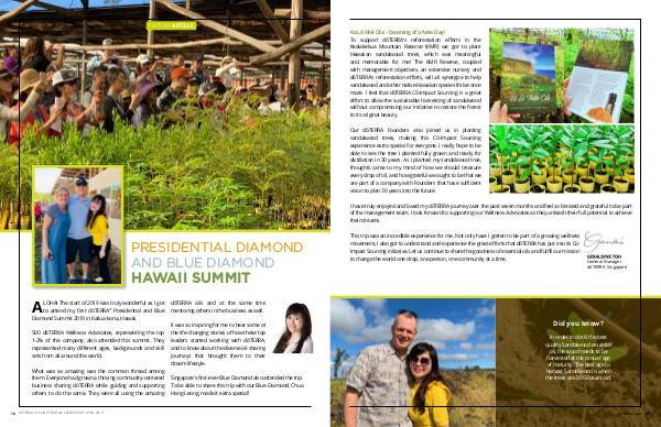 FEATURE ARTICLE PRESIDENTIAL DIAMOND AND BLUE DIAMOND HAWAII SUMMIT A LOHA! The start of 2019 was truly wonderful as I got dōTERRA oils and at the same time to attend my first dōTERRA ® Presidential and Blue mentoring others in the business as well. Diamond Summit 2019 in Kailua-kona, Hawaii. It was so inspiring for me to hear some of 500 dōTERRA Wellness Advocates, representing the top the life-changing stories of how these top 1-2% of the company, also attended this summit. They leaders started working with dōTERRA, represented many different ages, backgrounds and skill and to know about the diverse oil-sharing sets from all around the world. journeys that brought them to their dream lifestyle. What was so amazing was the common thread among 18 them. Everyone had grown a thriving community-centered Singapore’s first-ever Blue Diamond also attended the trip. business sharing dōTERRA while guiding and supporting To be able to share this trip with our Blue Diamond, Chua others to do the same. They were all using the amazing Hong Leong, made it extra special! dōTERRA SE ASIA ESSENTIAL LEADERSHIP I APRIL 2019