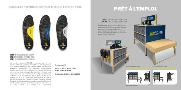 La gamme PROJOB Onyx est livrée avec un rangement / présentoir de vente au détail qui peut être combiné dans la dimension optimale pour votre disposition. À certains niveaux de commande, nous vous prêterons gratuitement un présentoir.