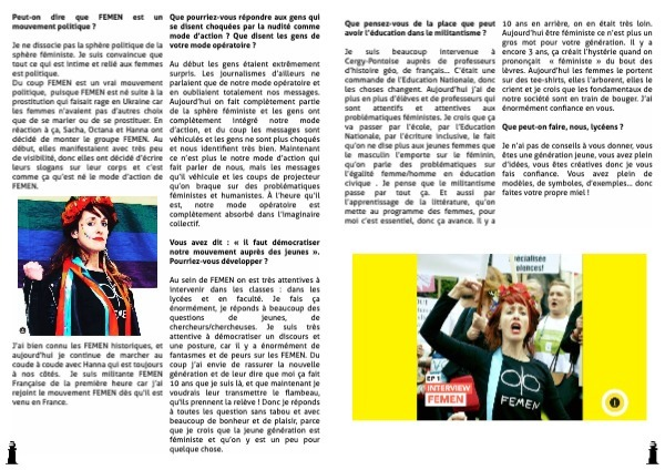 Je suis beaucoup intervenue à Cergy-Pontoise auprès de professeurs d’histoire géo, de français… C’était une commande de l’Education Nationale, donc les choses changent. Aujourd’hui j’ai de plus en plus d’élèves et de professeurs qui sont attentifs et attentives aux problématiques féministes. Je crois que ça va passer par l’école, par l’Education Nationale, par l’écriture inclusive, le fait qu’on ne dise plus aux jeunes femmes que le masculin l’emporte sur le féminin, qu’on parle des problématiques sur l’égalité femme/homme en éducation civique . Je pense que le militantisme passe par tout ça. Et aussi par l’apprentissage de la littérature, qu’on mette au programme des femmes, pour moi c’est essentiel, donc ça avance. Il y a 10 ans en arrière, on en était très loin. Aujourd’hui être féministe ce n’est plus un gros mot pour votre génération. Il y a encore 3 ans, ça créait l’hystérie quand on prononçait « féministe » du bout des lèvres. Aujourd’hui les femmes le portent sur des tee-shirts, elles l’arborent, elles le crient et je crois que les fondamentaux de notre société sont en train de bouger. J’ai énormément confiance en vous.