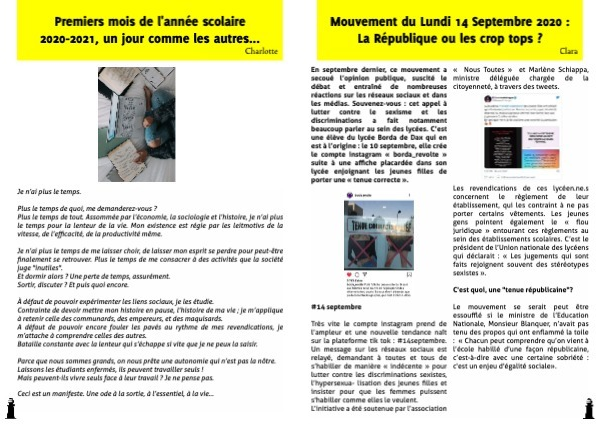 En septembre dernier, ce mouvement a secoué l’opinion publique, suscité le débat et entraîné de nombreuses réactions sur les réseaux sociaux et dans les médias. Souvenez-vous : cet appel à lutter contre le sexisme et les discriminations a fait notamment beaucoup parler au sein des lycées. C’est une élève du lycée Borda de Dax qui en est à l’origine : le 10 septembre, elle crée le compte instagram « borda_revolte » suite à une affiche placardée dans son lycée enjoignant les jeunes filles de porter une « tenue correcte ».