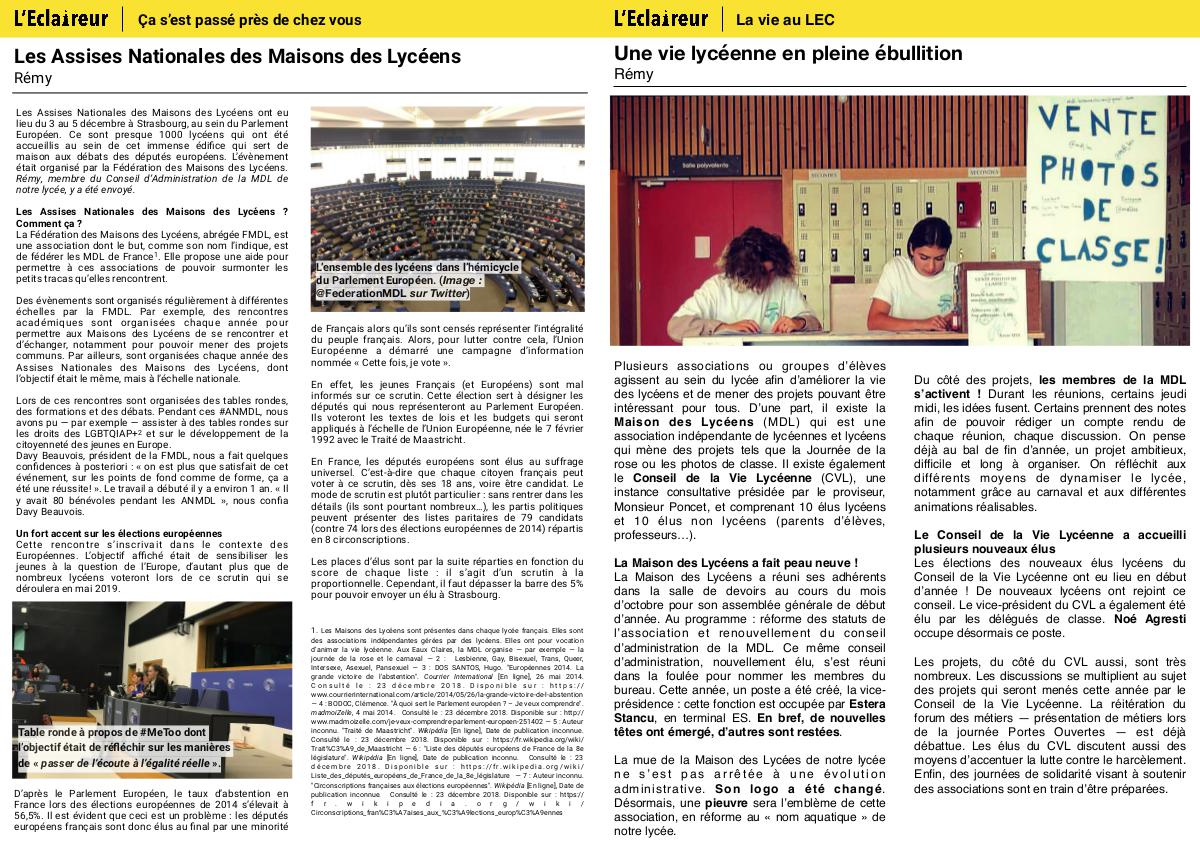 d’animer la vie lycéenne. Aux Eaux Claires, la MDL organise — par exemple — la