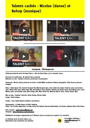 Elèves : Emile Amans (TS), Charlotte Bornand (TS), Mila Bourgoin (2de), Clara Caulier (TL), Esther Chambon (2de), Lisa Dechaux (2de), Thémis Gilly (1ère), Rémy Gudin (TES), Noé Guillaud (1ère), Eurydice Houllière (TL), Emilie Juarez, Clara Michel (2de), Louise Némery (2de), Lucile Nicaise (2de), Elisa Pelegry (TES), Ninon Platel (TS), Marianne Ritorto (1ère), Elodie Saldana (TES)