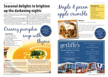 1. Preheat oven to 180 C/Gas mark 4. 2. Place apples in a 23x33cm (9x13 in) baking dish. In a bowl, cream together butter and sugar. Stir in flour, oats and salt. Fold in nuts. Sprinkle oat mixture evenly Serves: 8 over apples. Drizzle with maple time: syrup. Preparation utes 10 min e: 3. Bake in preheated oven for 50 Cooking tim 1 hour to 70 minutes, until apples are tender and topping is golden. 10 mins