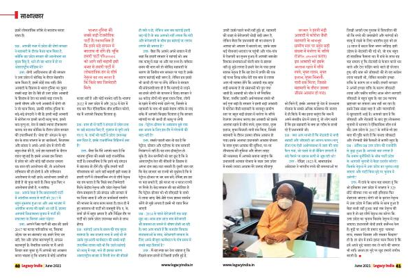 उत्तर- मैं दावे के साथ कह सकता हूं कि जो इतिहास उत्तर प्रदेश में भाजपा ने 325 सीटें जीतकर रचा था वही इतिहास फिर दोहराया जाएगा । योगी जी के कु शल नेतृतव में उत्तर प्रदेश में जिस तरीके से काम हुआ है वैसा कभी नहीं हुआ । जहां तक नेतृतव की बात है तो वह शीर्ष नेतृतव तय करेगा कि उत्तर प्रदेश का चुनाव किसके नेतृतव में लड़ा जाएगा । प्रधानमंत्री मोदी हमारे सवपोचच नेता हैं । मुद्ों पर आएं तो हमारा मुद्ा “ सबका साथ , सबका विकास और सबका विश्ास ” ही है । हर क्ेत्र में हमने इतना काम किया है कि हमें अपने मुद्े जनता तक ले जाने की जरूरत भी नहीं । जनता हर मुद्े पर खुद हमारी तारीफ़ करती है । �