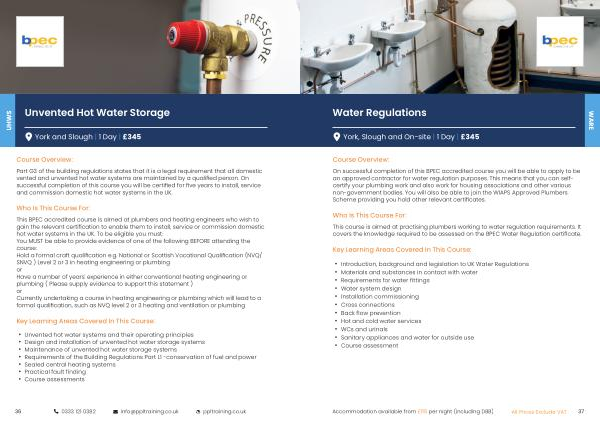 This BPEC accredited course is aimed at plumbers and heating engineers who wish to gain the relevant certification to enable them to install , service or commission domestic hot water systems in the UK . To be eligible you must : You MUST be able to provide evidence of one of the following BEFORE attending the course : Hold a formal craft qualification e . g . National or Scottish Vocational Qualification ( NVQ / SNVQ ) Level 2 or 3 in heating engineering or plumbing or Have a number of years ' experience in either conventional heating engineering or plumbing ( Please supply evidence to support this statement ) or Currently undertaking a course in heating engineering or plumbing which will lead to a formal qualification , such as NVQ level 2 or 3 heating and ventilation or plumbing