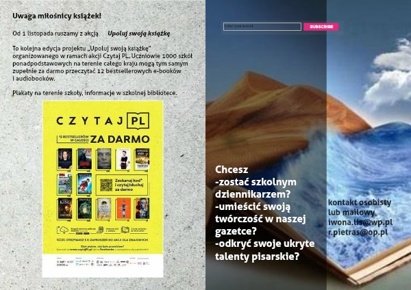 Plakaty na terenie szkoły, informacje w szkolnej bibliotece.