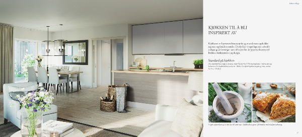 Alle standardløsningene leveres med fronter fra HTH, benkeplater i heltre eik og hvitevarer fra kvalitetsleverandøren Miele. Detaljert kjøkkentegning utarbeides for hver leilighet.