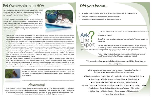 This answer brought to you by Holly Connell, Assessment and Billing Group Manager Leland Management