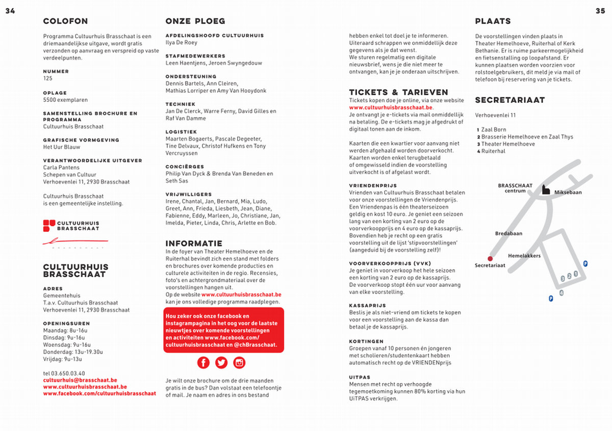 Vrienden van Cultuurhuis Brasschaat betalen voor onze voorstellingen de Vriendenprijs. Een Vriendenpas is één theaterseizoen geldig en kost 10 euro. Je geniet een seizoen lang van een korting van 2 euro op de voorverkoopprijs en 4 euro op de kassaprijs. Bovendien heb je recht op een gratis voorstelling uit de lijst‘ stipvoorstellingen’( aangeduid bij de voorstelling zelf)!