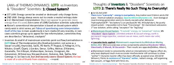 • Inventors & small # of mainstream scientists point out flaw/contradiction in