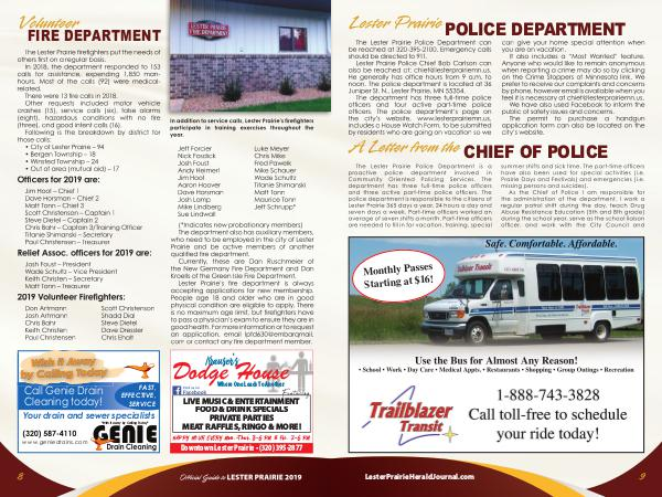 In addition to service calls, Lester Prairie’s fi refi ghters