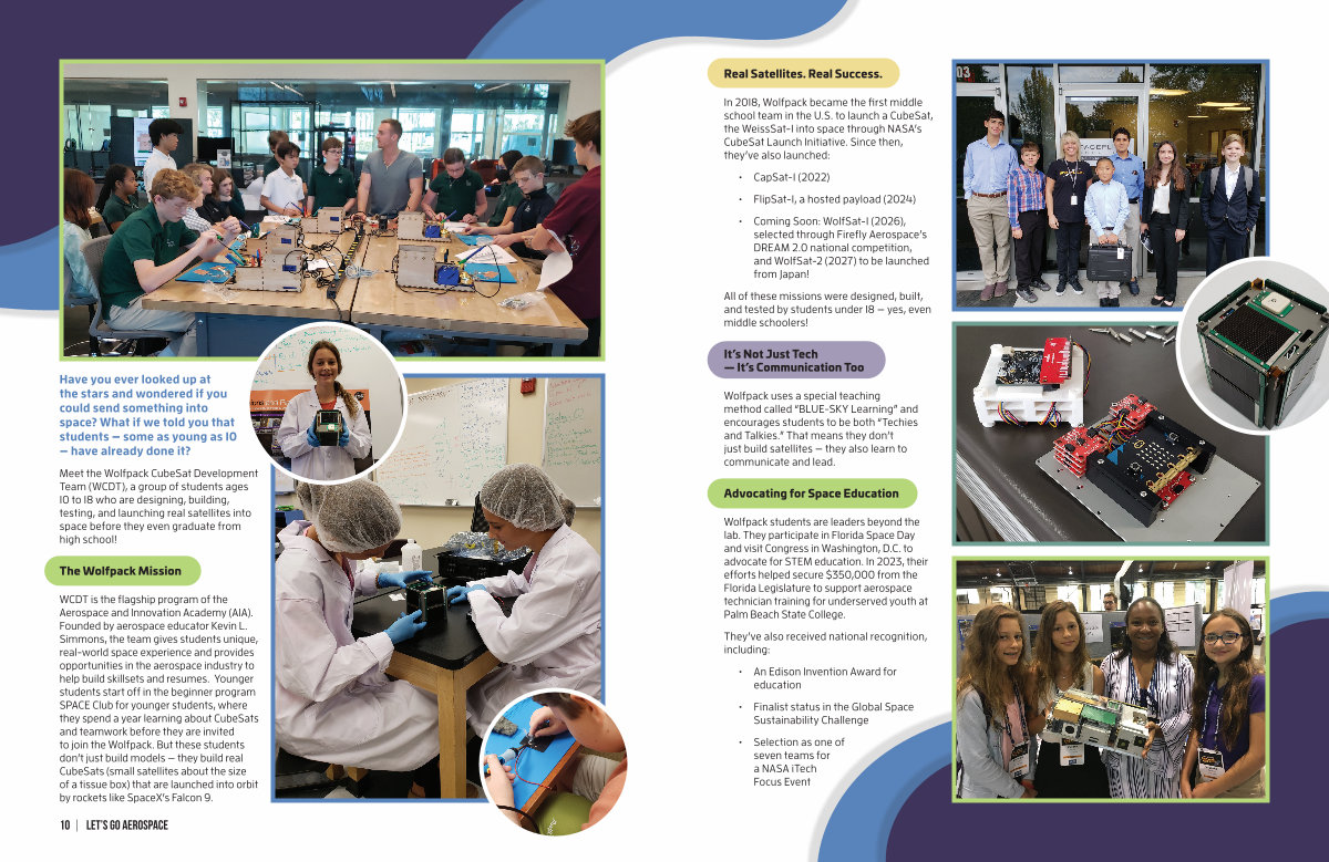 Wolfpack students are leaders beyond the lab. They participate in Florida Space Day and visit Congress in Washington, D. C. to advocate for STEM education. In 2023, their efforts helped secure $ 350,000 from the Florida Legislature to support aerospace technician training for underserved youth at Palm Beach State College.