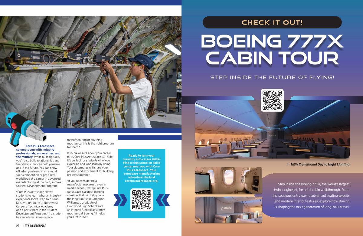Core Plus Aerospace connects you with industry professionals, universities, and the military. While building skills, you’ ll also build relationships and friendships that can help you now and in the future. You can show off what you learn at an annual skills competition or get a realworld look at a career in advanced manufacturing at the paid, summer Student Development Program.