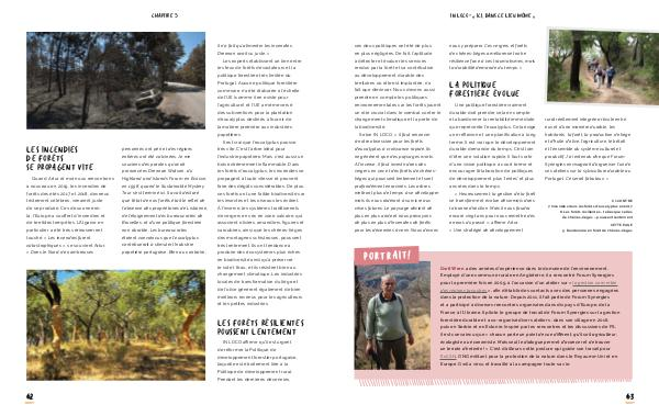 CHAPitRe 5 il n’a fait qu’alimenter les incendies. Drennan avait vu juste. » Les experts établissent un lien entre les feux de forêts dévastateurs et la politique forestière très limitée du Portugal. Aucune politique forestière commune n’a été élaborée à l’échelle de l’UE (comme il en existe pour l’agriculture) et l’UE a même versé des subventions pour la plantation d’eucalyptus destinés à fournir de la matière première aux industries papetières. Les incendies de forêts se propagent vite Il est vrai que l’eucalyptus pousse personnes ont péri et des régions très vite. C’est l’arbre idéal pour entières ont été calcinées. Je me l’industrie papetière. Mais c’est aussi un souviens des paroles qu’avait bois extrêmement inflammable. Dans prononcées Drennan Watson, du les forêts d’eucalyptus, les incendies se Highland and Islands Forum en Écosse, propagent à toute vitesse et peuvent à nouveau en 2019, les incendies de en 1998, quand le Sustainable Mystery faire des dégâts considérables. De plus, forêts des étés 2017 et 2018, devenus Tour s’est terminé ici. Il avait déclaré ces forêts ont une faible biodiversité car tristement célèbres, venaient juste que l’état de nos forêts était le reflet de les insectes et les oiseaux les évitent. de se produire. Ces deux années- l’absence des propriétaires de Lisbonne, À l’inverse, les systèmes traditionnels là, l’Europe a souffert d’incendies et de l’éloignement des bureaucrates de de vergers en sec en zone calcaire, qui de terribles tempêtes. L’Algarve en Bruxelles, et d’une politique forestière associent oliviers, amandiers, figuiers et particulier a été très sérieusement non durable. Les bureaucrates caroubiers, ainsi que les chênes-lièges touché. « Les incendies furent étaient convaincus que l’eucalyptus des montagnes schisteuses, poussent catastrophiques », se souvient Artur. contribuerait à stimuler l’industrie très lentement. Ils ont tendance à « Dans le Nord, de nombreuses papetière portugaise. Bien au contraire, produire des écosystèmes plus riches Quand Artur et moi nous rencontrons en biodiversité ainsi qu’à préserver le sol et l’eau, et ils résistent bien au changement climatique. Les industries locales de transformation du liège et de l’olive génèrent également de bien meilleurs revenus pour les agriculteurs et les petites industries. Les forêts résilientes poussent lentement IN LOCO affirme qu’il est urgent de réformer la Politique de développement forestier portugaise, laquelle est étroitement liée à la Politique de développement rural. Pendant les dernières décennies, 62