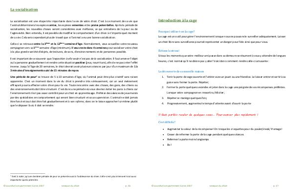 de sa vie. Cela sera cependant plus de travail que si l’animal a eu une bonne socialisation.
