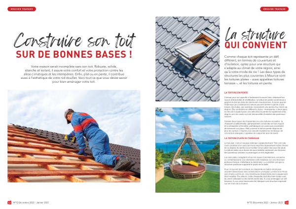 Comme chaque toit représente un défi différent , en termes de couverture et d ’ isolation , optez pour une structure qui s ’ adapte au climat de votre région , ainsi qu ’ à votre mode de vie ! Les deux types de structures les plus courantes à Maurice sont les toitures plates – aussi appelées toitures terrasse –, et les toitures en pente .