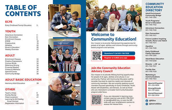 Our mission is to provide lifelong learning opportunities for people of all ages, abilities and cultures in our community. Partner with Community Education staff to consider how best to meet the needs and interests of community members. We are currently seeking council members focused specifically on Early Childhood, Youth, Adults with Disabilities, and Seniors, as well as those who are interested in a broader Community Education program-wide focus.