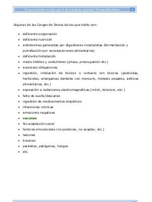 � deficiente oxigenación � deficiente nutrición � endotoxinas generadas por digestiones incompletas( fermentación y putrefacción por excesos / errores alimentarios) � deficiente hidratación � malos hábitos y costumbres( prisas, preocupación etc.) � excesivas obligaciones � ingestión, inhalación de tóxicos o contacto con tóxicos( pesticidas, herbicidas, amalgamas dentales con mercurio, metales pesados, aditivos alimentarios, etc.) � exposición a radiaciones electromagnéticas( móvil, televisor, etc.) � falta de sueño / descanso � ingestión de medicamentos alopáticos � infecciones crónicas � emociones negativas � vacunas � No-aceptación social � factores emocionales( no perdonar, no aceptar, etc.) � lesiones � traumas � parásitos, patógenos, hongos � etc.