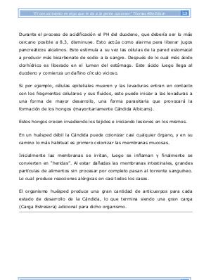 Durante el proceso de acidificación el PH del duodeno, que debería ser lo más cercano posible a 8.3, disminuye. Esto actúa como alarma para liberar jugos pancreáticos alcalinos. Esto estimula a su vez las células de la pared estomacal a producir más bicarbonato de sodio a la sangre. Después de lo cual más ácido clorhídrico es liberado en el lumen del estómago. Este ácido luego llega al duodeno y comienza un dañino círculo vicioso.
