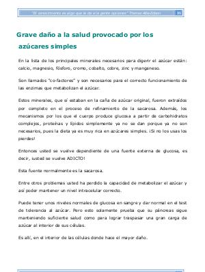 Estos minerales, que sí estaban en la caña de azúcar original, fueron extraídos por completo en el proceso de refinamiento de la sacarosa. Además, los mecanismos por los que el cuerpo produce glucosa a partir de carbohidratos complejos, proteínas y lípidos simplemente ya no se dan porque ya no son necesarios, pues la dieta ya es muy rica en azúcares simples. ¡ Si no los usas los pierdes!